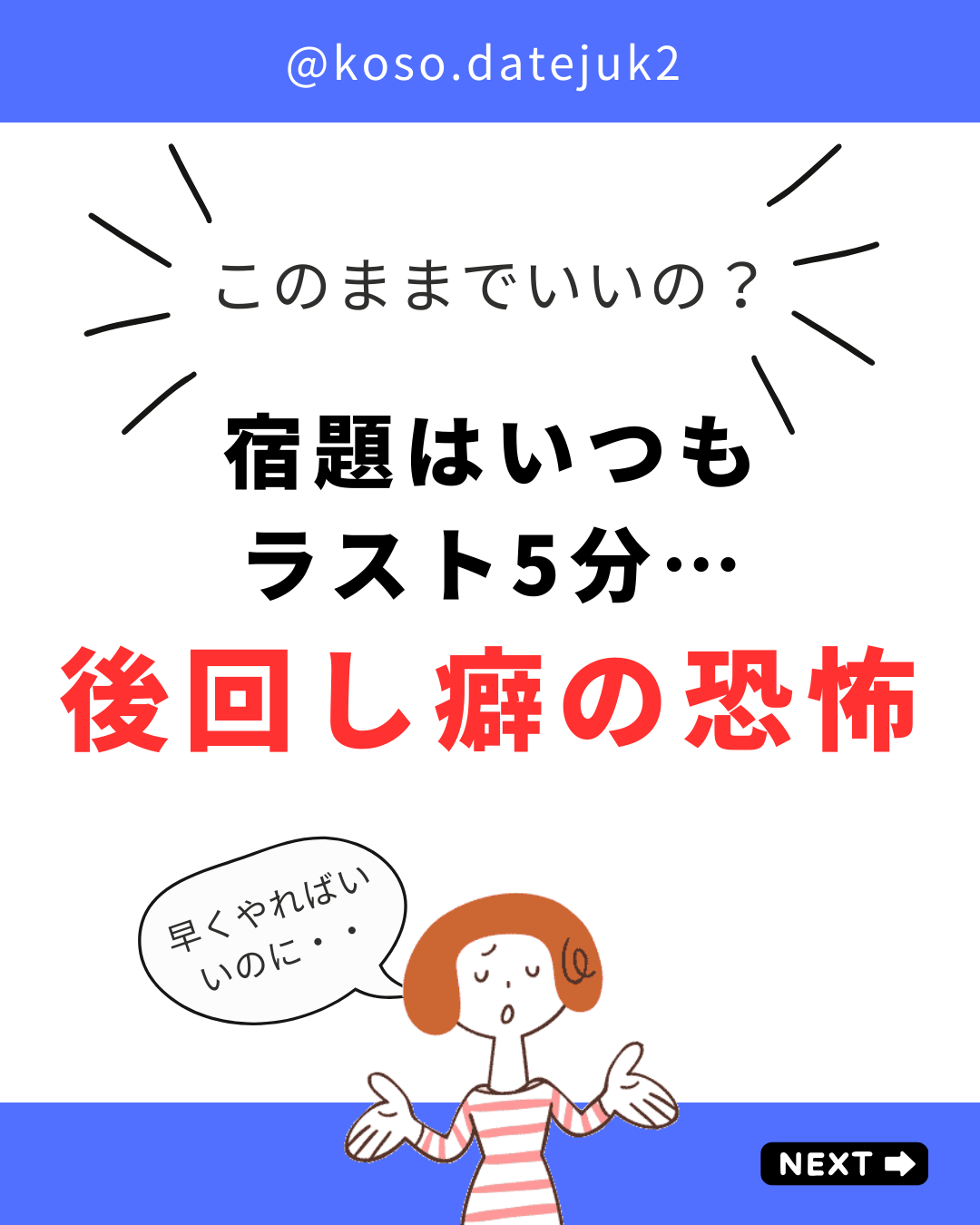 宿題の後回し癖は、多くの中学生がぶつかる壁です。